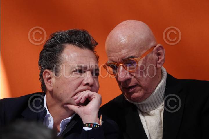 CIUDAD DE MÉXICO, 10ENERO2024.- Pablo Lemus, precandidata a la gobernatura de Jalisco, y Dante Delgado, presidente de Movimiento Ciudadano, conversaron durante el registro del diputado Jorge Álvarez Máynez como precandidato a la presidencia por el partido Movimiento Ciudadano, realizado en la cede de este partido. FOTO: GRACIELA LÓPEZ /CUARTOSCURO.COM