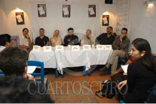 MÉXICO D.F. 12JUNIO2007.-En conferencia de prensa el elenco conformado por Roberto Soto, Arturo Ríos, Ana Graham, Saúl Meléndez, Joaquín Cosio, Antonio Vega y el director Enrrique Siger, dieron a conocer pormenores de la nueva puesta en ecena de la obra "Los Baños" del escritor irlandés Paul Walker. FOTO; GUILLERMO PEREA/CUARTOSCURO.COM