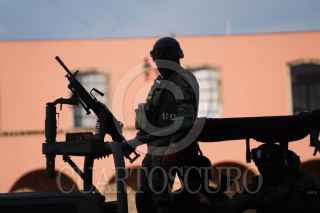 MORELIA, MICHOACÁN, 10ENERO2024. Mientras daba comienzo el operativo interinstitucional para disminuir los homicidios y la violencia en distintas colonias de la ciudad de Morelia, un grupo de al menos 10 individuos se reunió en la colonia Ampliación Gertrudis Sánchez, y realizó varias detonaciones de arma de fuego, indicaron fuentes allegadas al tema. La movilización de policías de distintas corporaciones, agentes de la Fiscalía General del Estado (FGE) y elementos castrenses partió esta tarde de miércoles del Cuartel de la 21 Zona Militar. En contraparte, al norte de la capital michoacana, los empistolados hicieron aproximadamente 40 disparos y se desplazaron a bordo de seis camionetas, entre ellas una Tacoma blanca, además de un auto BMW, según informaron algunos ciudadanos a las autoridades policiales. Se espera que con el reciente despliegue policial y militar haya más seguridad para los morelianos, pues en lo que va del mes de enero ya suman 18 homicidios. FOTO: JUAN JOSÉ ESTRADA SERAFÍN /CUARTOSCURO.COM