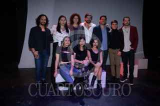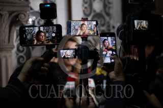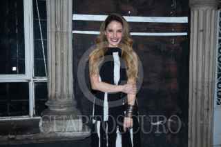 CIUDAD DE MÉXICO, 10ENERO2024. La actriz Itatí Cantoral es abordadda por reporteros y camarografos previo al estreno de la puesta en escena “Ensayo celular” que se presenta en el Foro Shakespeare. FOTO: EDGAR NEGRETE LIRA/CUARTOSCURO.COM