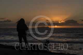 TIJUANA, BAJA CALIFORNIA, 10ENERO2024.- Personas disfrutan del frio y colorido atardecer en el malecón de Playas de Tijuana, lugar que es visitado por decenas de personas, muchos de ellos acompañados de sus mascotas para pasar un rato agradable a pesar de las bajas temperaturas que se registran en la región. FOTO: OMAR MARTÍNEZ /CUARTOSCURO.COM