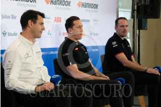 CIUDAD DE MÉXICO, 12ENERO2024.- Los representantes de escuderías Nicolas Mauduit (DS Penske); James Barclay (Jaguar TCS Racing) y Florian Modlinger (Tag Heuer Porsche) ofrecieron conferencia a medios durante el primer día de actividades del E-Prix de la Ciudad de México de la Fórmula E. FOTO: GALO CAÑAS/CUARTOSCURO.COM
