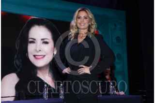 CIUDAD DE MÉXICO, 12ENERO2024. Laura Flores en la conferencia de la obra de teatro “Hijas de su madre” a presentarse en el nuevo Teatro Versalles. FOTO: EDGAR NEGRETE LIRA/CUARTOSCURO.COM