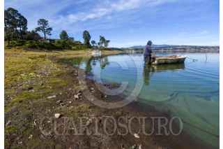 VILLA VICTORIA, ESTADO DE MÉXICO, 12ENERO2024.- Aspectos de la Presa de Villa Victoria que forma parte del Sistema Cutzamala, la cual tiene un 30.2 por ciento de su alamcenaje, en el informe semanal del Comité Técnico de Operación de Obras Hidráulicas se informó que el almacenamiento actual del sistema es el más bajo que se ha registrado históricamente debido a la sequía severa. FOTO: CRISANTA ESPINOSA AGUILAR /CUARTOSCURO.COM