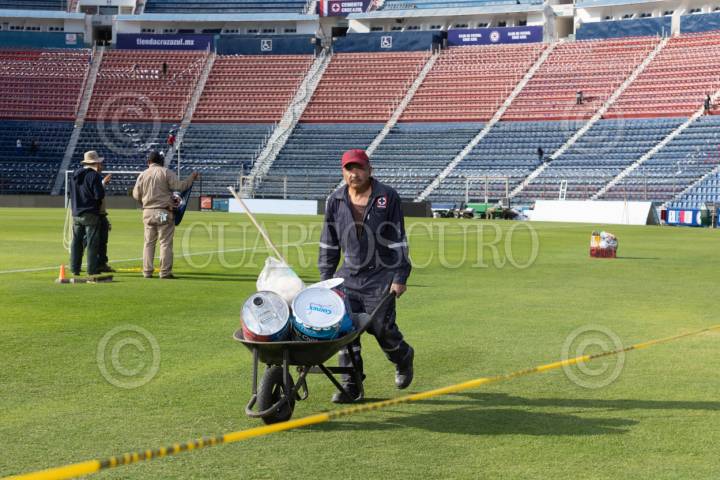 CIUDAD DE MÉXICO, 12ENERO2023.- A un día de que comience el Torneo Clausura 2024, las instalaciones del Estadio Ciudad de los Deportes, continúan sin ser terminadas. Mientras trabajadores siguen laborando a marchas forzadas para tener listo lo que será la primera fecha cuando el Cruz Azul se enfrente al Pachuca. FOTO: EDGAR NEGRETE LIRA/CUARTOSCURO.COM