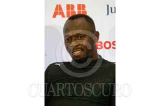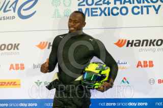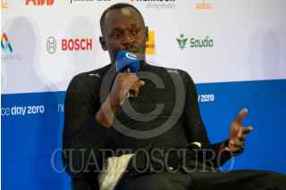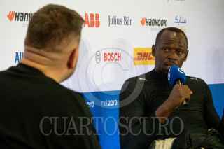 CIUDAD DE MÉXICO, 12ENERO2024.- El ex velocista y campeón olímpico en 100 metros planos, Usain Bolt, participó en una conferencia a medios durante el E-Prix de México de la Fórmula E en el autódromo Hermanos Rodríguez. FOTO: GALO CAÑAS/CUARTOSCURO.COM
