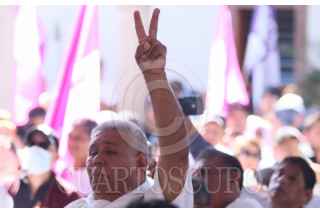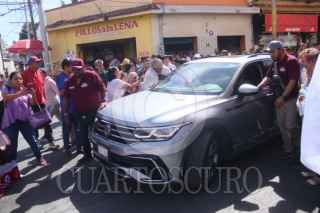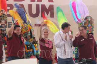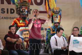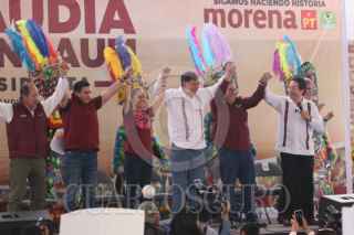 YAUTEPEC, MORELOS, 13ENERO2024.- Claudia Sheinbaum Pardo, precandidata única a la presidencia de la República por el Movimiento de Regeneración Nacional se reunió con militantes en la plaza del Chinelo. Estuvo acompañada de Ulises Bravo Molina y Mario Delgado dirigentes estatal y naciónal de MORENA, de Gerardo Fernández Noroña y Ricardo Monreal. FOTO: MARGARITO PEREZ RETANA/CUARTOSCURO.COM