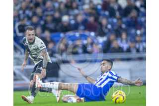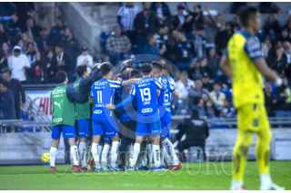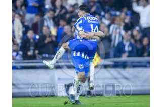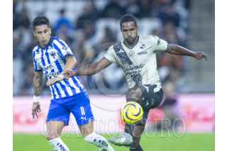 GUADALUPE, NUEVO LEÓN, 13ENERO2024.- Sebastián Vega de los Rayados del Monterrey, se disputa el balón con Gustavo Ferrareis del Puebla, en el estadio BBVA, partido correspondiente a la jornada 1 de la Clausura 2024 de la Liga Mx. Marcador Final: Monterrey 2 - Puebla: 0. FOTO: GABRIELA PÉREZ MONTIEL / CUARTOSCURO.COM