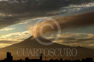 PUEBLA, PUEBLA, 14ENERO2023.- El volcán Popocatépetl lanzó larga fumarola esta tarde. El semáforo de alerta volcánica permanece en amarillo fase 2. FOTO: MIREYA NOVO/CUARTOSCURO.COM