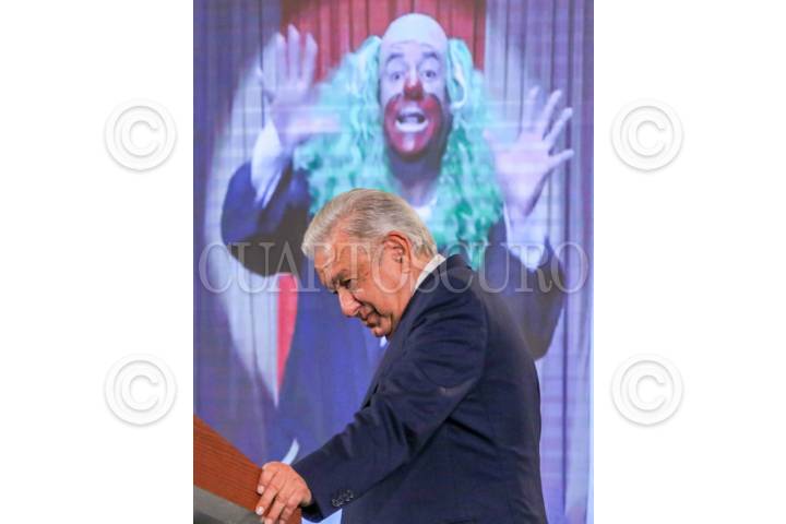 CIUDAD DE MÉXICO, 15ENERO2024.- Andrés Manuel López Obrador, Presidente de México, mostró un vídeo de Brozo en el cuál crítico la forma que se expresa, ya que el llamado "Payaso Tenebroso" utiliza varias groserías, esto durante la.mañanera. FOTO: MOISÉS PABLO/CUARTOSCURO.COM