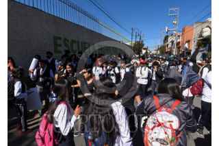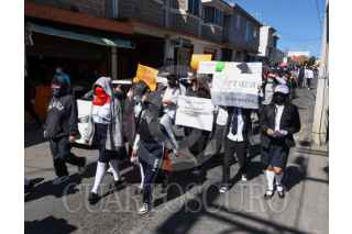 LERMA, ESTADO DE MÉXICO, 15ENERO2024.- Estudiantes de la Escuela Preparatoria Oficial núm 23 de Lerma denunciaron acoso, abuso de poder, por parte de los maestros de la institución, robos, instalaciones en mal estado, desvío de recuerdos entre otras cosas; se reunieron en la plaza principal de este municipio y caminaron hasta la escuela, ahí algunas estudiantes enfrentaron a uno de sus presuntos acosadores y exigieron que sea removido del lugar, piden a las autoridades escolares tomar cartas en el asunto. FOTO: CRISANTA ESPINOSA AGUILAR /CUARTOSCURO.COM