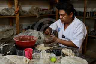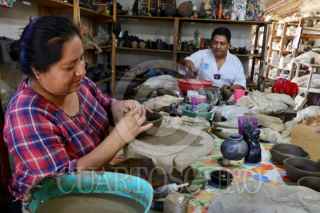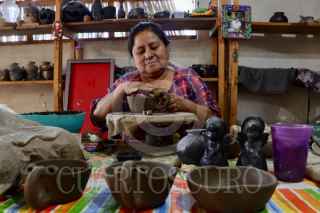 SAN BARTOLO COYOTEPEC, OAXACA, 15ENERO2024.- Acoso, discriminación y violencia de género ha sufrido Siria Lorena Cruz Martínez, artesana de barro negro en la comunidad zapoteca de San Bartolo Coyotepec, ubicada a 12 kilómetros de la capital de Oaxaca. La fundadora, junto con su esposo el maestro Fortunato Cruz Simón, del Taller de Barro Negro Peko Pekosita, ha sido hostigada por un grupo de personas de la comunidad en redes sociales y en persona bajo el pretexto de no ser originaria de la población, además en últimos días se ha pedido que sea expulsada de San Bartolo Coyotepec. Fue en diciembre de 2020, que la pareja de artesanos creó el taller Peko Pekosita, en donde realizan innovadoras piezas de barro negro que se exportan a países como Estados Unidos, Francia e Inglaterra. El taller da empleo directo a 15 personas, cuyo sustento debido a la problemática que enfrenta la artesana se encuentra en peligro. FOTO: CAROLINA JIMÉNEZ/CUARTOSCURO.COM
