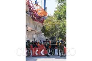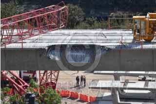 CIUDAD DE MÉXICO, 16ENERO2023.- Una estructura de concreto del Tren Interurbano México-Toluca cayó mientras una grúa realizaba maniobras en las inmediaciones de Observatorio. de acuerdo a los reportes de la alcaldía Álvaro Obregón, dos automóviles que se encontraban en las inmediaciones sufrieron daños, no se registraron personas lesionadas. FOTO: MARIO JASSO/CUARTOSCURO.COM