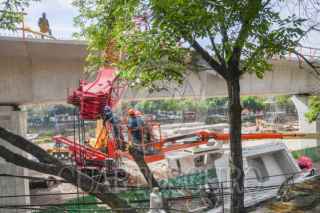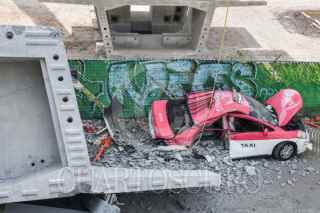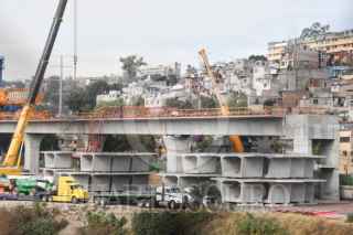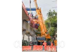 CIUDAD DE MÉXICO, 17ENERO2024.- Continúan las labores para retirar la grúa, escombros, y la dovela de concreto del Tren Interurbano México-Toluca, que ayer cayó mientras se realizaban maniobras sobre la calzada Minas de Arena de la colonia Acueducto. FOTO: MARIO JASSO/CUARTOSCURO.COM