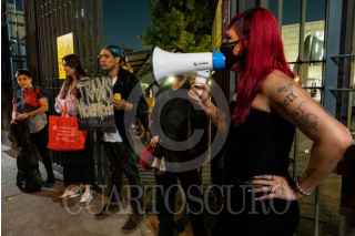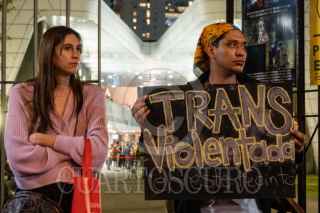 CIUDAD DE MÉXICO, 17ENERO2024.- La activista trans Laura Glover en compañía de integrantes de la comunidad transgénero y no binaria se manifestó en las entradas de la Cineteca Nacional para exhibir que no se han cumplido los acuerdos y demandas tras el hecho en que fue sacada de los baños del inmueble y que no se respeto su identidad de género. Asimismo, exigió justicia por el asesinato de la activista Samantha Gómez, mujer trans y activista asesinada al salir del Reclusorio Sur. FOTO: GALO CAÑAS/CUARTOSCURO.COM