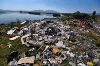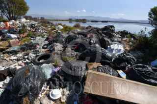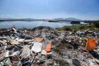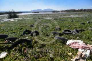 SAN ANTONIO LA ISLA, ESTADO DE MÉXICO, 18ENERO2024.- Basura, neumáticos, desechos de construcción se pueden observar en la orilla del Lago San Antonio la Isla a espaldas del fraccionamiento San Dimas, un cuerpo de agua que luce contaminado y el cual alberga varias especies de aves. FOTO: CRISANTA ESPINOSA AGUILAR /CUARTOSCURO.COM