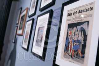 CIUDAD DE MÉXICO, 18ENERO2024.- El caricaturista Rafael Barajas Durán "El Fisgón" le da detalles a la periodista Merry MacMasters de la exposición "Caricatura y Revolución. Los Flores Magón y las Revistas Satíricas de Combate", la cual se encuentra en el Museo del Estanquillo. FOTO: MOISÉS PABLO/CUARTOSCURO.COM