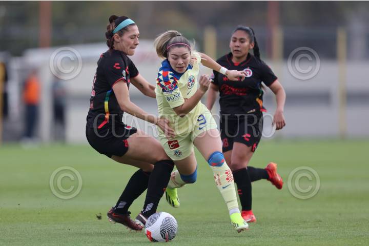 CIUDAD DE MÉXICO, 18ENERO2024. Partido de fútbol América vs Tijuana correspondiente a la jornada 3 del Torneo Clausura 2024 de Liga BBVA MX Femenil, en instalaciones de Coapa. FOTO: EDGAR NEGRETE LIRA/CUARTOSCURO.COM