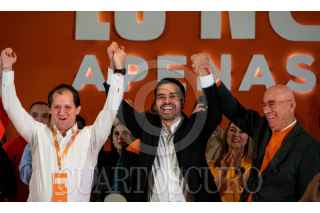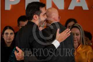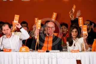 CIUDAD DE MÉXICO, 20ENERO2024.- Juan Zavala, Secretario General de Acuerdos de Movimiento Ciudadano; Jorge Álvarez Máynez, candidato a la presidencia de la República por Movimiento Ciudadano, y Dante Delgado, presidente Nacional del partido, durante la asamblea nacional del partido en que se le otorgó la constancia a Álvarez Máynez como candidato de Movimiento Ciudadano para las próximas elecciones. FOTO: GALO CAÑAS/CUARTOSCURO.COM