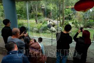 CIUDAD DE MÉXICO, 20ENERO2024.- A sus 33 años Xin Xin, la única panda gigante de nacionalidad mexicana, se posiciona como una de las pandas más longevas en el mundo y en futuro cercano sería el único ejemplar de su especie en continente americano. Lo anterior tras la solicitud de China para que los cuatro pandas que habitan el zoológico de Atlanta regresen a su país este 2024. Xin Xin (Esperanza en Chino) es hija de Tohui y Chia Chia y es la última panda de la dinastía de Ying Ying y Pe Pe, una pareja de pandas gigantes regalados a México por el gobierno chino en 1975. Xin Xin es “una panda de hábitos” como mencionan sus cuidadores, cada mañana recibe una ración de 12 kilos de bambú seleccionado que haya sido cultivado sin agua trata y fertilizantes, así como suplementos alimenticios y croquetas especiales. Asimísmo, se le otorgan diferentes ejercicios de enriquecimientos los cuales la mantienen activa en sus instintos, estos ejercicios constan de cajas de cartón en que se coloca fruta, manzana es su favorita, y se le rocía esencias para estimular su olfato. Debido a su edad Xin Xin es sometida cada seis meses a estudios de sangre y un revisión médica quincenal, sin embargo, todo el tiempo esta en observación por parte de sus cuidadores en el Zoológico de Chapultepec. Visitantes de diferentes latitudes acuden al recinto para apreciar a este ejemplar. FOTO: GALO CAÑAS/CUARTOSCURO.COM