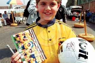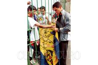 Niño aficionado en espera de alguna firma o un saludo de los integrantes del Club América. FOTO: Victoria Valtierra/CUARTOSCURO.COM