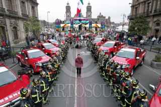 CIUDAD DE MÉXICO, 20ENERO2024.- Martí Batres, jefe de Gobierno, encabezó la entrega de doce nuevas unidades para el Heroico Cuerpo de Bomberos de la capital. FOTO: GOBIERNO DE LA CIUDAD DE MÉXICO/CUARTOSCURO.COM