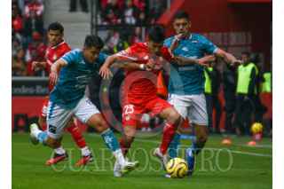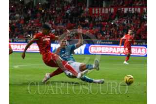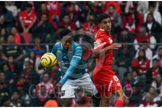 TOLUCA, ESTADO DE MÉXICO, 20ENERO2024.- Andrés Pereira Defensa de los Diablos de Toluca y Édgar Bárcenas del Club de Mazatlán, durante el encuentro de la jornada 2 del Torneo Clausura 2024 de la Liga MX, el encuentro tuvo un marcador final 4-1 a favor del equipo escarlata. FOTO: CRISANTA ESPINOSA AGUILAR /CUARTOSCURO.COM