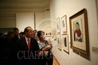 MÉXICO, D.F., 13JUNIO2007.- Felipe Calderón Hinojsa, Presidente de la República, inauguró la exposición "Frida Kahlo , Homenaje 1907-2007" en el Palacio de Bellas Artes. FOTO: ALFREDO GUERRERO/CUARTOSCURO.COM