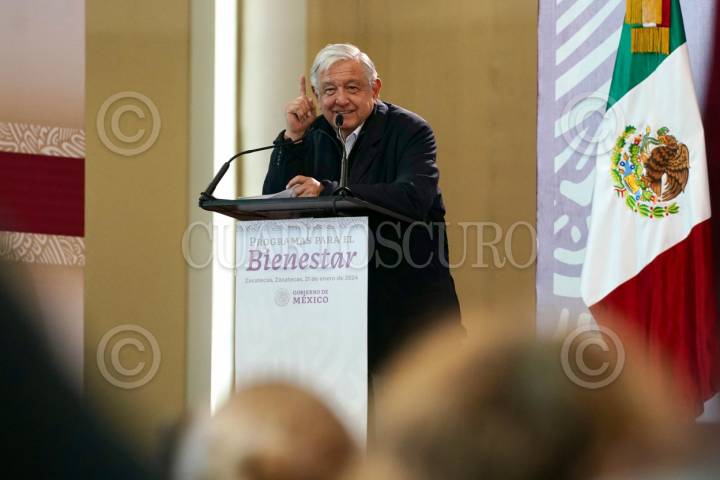 ZACATECAS, ZACATECAS, 21ENERO2024.- Andrés Manuel López Obrador, Presidente de México, supervisó los Programas para el Bienestar en Palacio de Convenciones Zacatecas. Lo acompañaron: David Monreal Ávila, Gobernador Constitucional del Estado de Zacatecas; Marath Bolaños López, Secretario del Trabajo y Previsión Social. FOTO: PRESIDENCIA/CUARTOSCURO.COM
