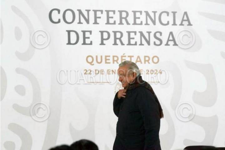 QUERÉTARO, QUERÉTARO, 22ENERO2024.- Andrés Manuel López Obrador, Presidente de México, durante la mañanera en la cual encabezó una firma de convenio con el gobierno federal para realizar obras de abastecimiento de agua potable a la entidad, entre las cuales destacan una planta de tratamiento de aguas residuales y la modernización de la presa El Batán. FOTO: PRESIDENCIA/CUARTOSCURO.COM
