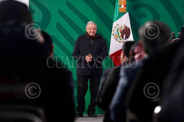 QUERÉTARO, QUERÉTARO, 22ENERO2024.- Andrés Manuel López Obrador, Presidente de México, durante la mañanera en la cual encabezó una firma de convenio con el gobierno federal para realizar obras de abastecimiento de agua potable a la entidad, entre las cuales destacan una planta de tratamiento de aguas residuales y la modernización de la presa El Batán. FOTO: PRESIDENCIA/CUARTOSCURO.COM