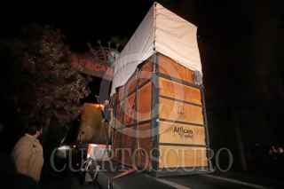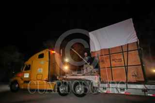 PUEBLA, PUEBLA, 23ENERO2023.- La jirafa Benito llegó esta madrugada al parque de conservación Africam Safari, tras un viaje de mas de 1900 kilómetros desde ciudad Juárez. El ejemplar llegó dentro de una caja especial que según aseguraron los expertos permitió que no estresará durante el trayecto. Frank Carlos Camacho, director de Africam Safari y quién lideró el traslado, señaló que tardarán varias semanas para que se adapte Benito a su nuevo hogar, y qué esperan integrarlo a la manada de jirafas que ellos albergan en su parque. Benito no se mostró a los medios para evitarle más estrés. FOTO: MIREYA NOVO/CUARTOSCURO.COM