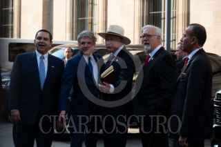CIUDAD DE MÉXICO, 23ENERO2024.- Los congresistas Henry Cuéllar, Michael McCaul, el embajador Ken Salazar y el congresista Randy Weber tras la reunión con el presidente Andrés Manuel López Obrador en Palacio Nacional. FOTO: GALO CAÑAS/CUARTOSCURO.COM