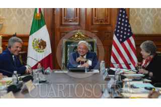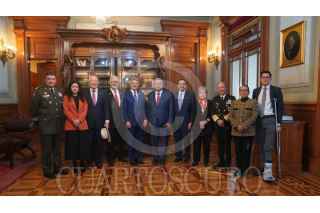 CIUDAD DE MÉXICO, 23ENERO2024.- Andrés Manuel López Obrador, Presidente de México, se reunión con los Congresistas: Henry Cuéllar y Michael McCaul, en Palacio Nacional. En el encuentro estuvieron presentes Ken Salazar, embajador de Estados Unidos, y Alicia Bárcena, secretaria de Relaciones Exteriores. FOTO: PRESIDENCIA/CUARTOSCURO.COM