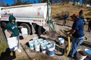 TOLUCA, ESTADO DE MÉXICO, 24ENERO2024.- Vecinos de 55 colonias de Toluca se han visto afectados por la disminución en el suministro de agua proveniente del Sistema Cutzamala, ante este problemática los habitantes almacenan agua en cubetas, ollas, garrafones y tinacos para poder realizar sus actividades cotidianas; el Organismo de Agua y Saneamiento de Toluca (OAyST) puso a disposición de la población pipas de agua potable para enfrentar esta problemática que afecta a más de 170 mil habitantes, las autoridades municipales piden a la población cuiden el agua y denuncien fugas. FOTO: CRISANTA ESPINOSA AGUILAR /CUARTOSCURO.COM