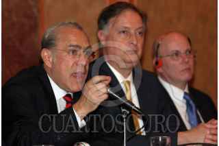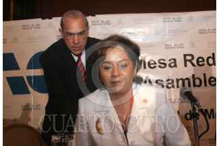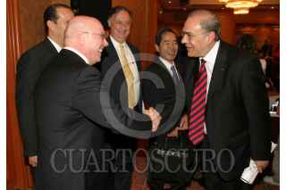 MÉXICO, D.F., 14JUNIO2007.- José Angel Gurría, Secretario General de la OCDE y Patricia Espinosa Castellano, Secretaría de Relaciones Exteriores, durante la inauguración de la asamblea anual de la BIAC y la COPARMEX en un hotel de Polanco. FOTO: MOISÉS PABLO/CUARTOSCURO.COM
