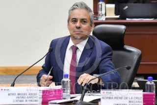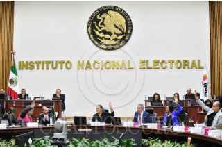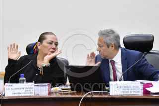 CIUDAD DE MÉXICO, 25ENERO2024.- Sergio Gutiérrez, diputado y representante de Morena ante el INE, muestra una imagen del logo de Operación y Mantenimiento a Edificios Inteligentes (OMEI), empresa vinculada Xóchitl Gálvez, precandidata presidencial, durante la sesión ordinaria del Consejo General del Instituto Nacional Electoral (INE). FOTO: MARIO JASSO/CUARTOSCURO.COM