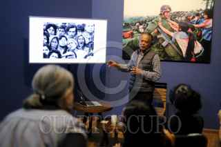 CIUDAD DE MÉXICO, 26ENERO2024.- Pedro Valtierra. fotógrafo y director de Cuartoscuro, ofreció una charla en Fundación Marso, donde actualmente se expone su trabajo. Pedro habló con los asistentes sobre sus experiencias en la fotografía y abordó detalles sobre algunas imágenes. FOTO: MISAEL VALTIERRA /CUARTOSCURO.COM
