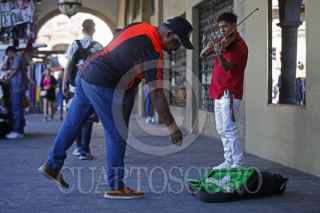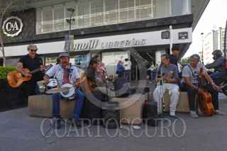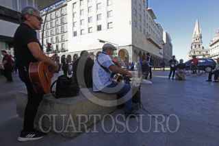 GUADALAJARA, JALISCO, 26ENERO2024.- Músicos urbanos diversos, ofrecen sus servicios en las principales calles del centro de la ciudad, esto con el fin de subsistir en estos tiempos tan complicados, en donde conseguir un trabajo estable es algo difícil. FOTO: FERNANDO CARRANZA GARCIA / CUARTOSCURO.COM