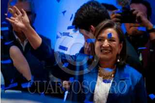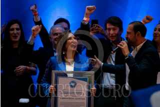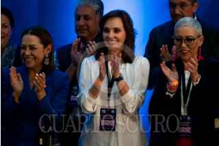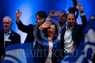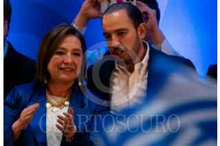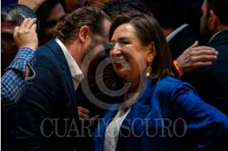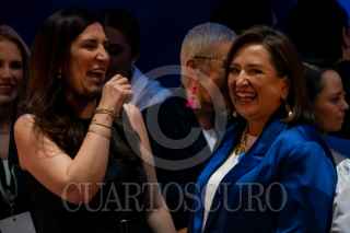 CIUDAD DE MÉXICO, 27ENERO2024.- Kenia López Rabadán, jefa de oficina de Xóchitl Gálvez, y Xóchitl Gálvez, candidata a la presidencia de la República por la alianza PRI-PAN-PRD, durante la entrega de su constancia como candidata del partido. FOTO: GALO CAÑAS/CUARTOSCURO.COM