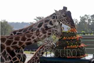 PUEBLA, PUEBLA, 27ENERO2023.- La jirafa "Benito" fue integrada con su nueva manada en Africam Safari, parque de conservación de vida silvestre, tras un periodo de observación en aislamiento. FOTO: MIREYA NOVO/CUARTOSCURO.COM