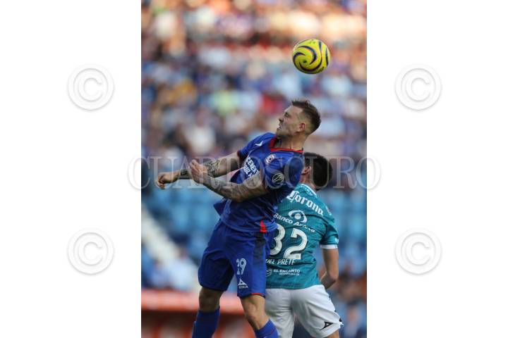 CIUDAD DE MÉXICO, 27ENERO2024. Carlos Rotondi despeja de cabeza una pelota durante el partido de fútbol Cruz Azul vs Mazatlán correspondiente a la jornada 3 del Torneo Clausura 2024 de Liga BBVA MX, en el Estadio Ciudad de los Deportes. FOTO: EDGAR NEGRETE LIRA/CUARTOSCURO.COM
