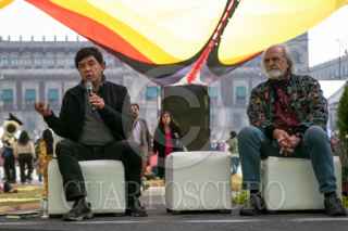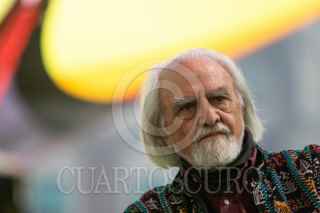 CIUDAD DE MÉXICO, 28ENERO2024.- El escritor Armando Bartra durante la presentación de su libro "Suku’un Felipe: Felipe Carrillo Puerto y la revolución maya de Yucatán", el cual fue editado por el Fondo de Cultura Económica (FCE), la cual se realizó en el Zócalo. FOTO: MOISÉS PABLO/CUARTOSCURO.COM