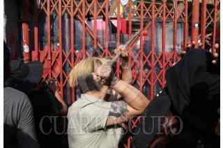 CIUDAD DE MÉXICO, 28ENERO2023.- Decenas de personas en defensa de los derechos por los animales marcharon desde glorieta de los insurgentes hasta la plaza de toros para exigir que se vuelvan a prohibir las corridas. Durante la marcha trataron de abrir la puerta principal y agredieron a personas que se disponían a entrar a la plaza. FOTO: ANDREA MURCIA /CUARTOSCURO.COM
