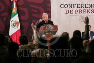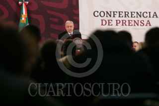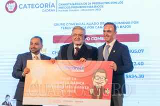 CIUDAD DE MÉXICO, 29ENERO2024.- David Aguilar Romero, titular de la Procuraduría Federal del Consumidor (Profeco), y Andrés Manuel López Obrador, Presidente de México, entregaron el reconocimiento mensual a la empresa Chedraui durante la mañanera. El reconocimiento fue recibido por Arturo Eduardo Vasconcelos y de Pablo, director general adjunto de Chedraui. FOTO: MOISÉS PABLO/CUARTOSCURO.COM