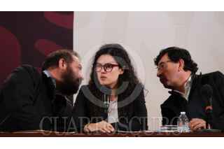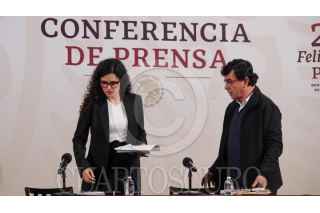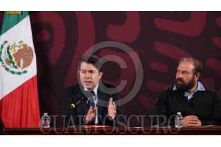 CIUDAD DE MÉXICO, 29ENERO2024.- Carlos Emiliano Calderón Mercado, coordinador de Estrategia Digital Nacional, Presidencia de la República, y Félix Arturo Medina Padilla, subsecretario de Derechos Humanos, Población y Migración, durante su participación en una conferencia de prensa sobre el posible acceso no autorizado al Sistema de Acreditación a Presidencia. El acto se realizó en Palacio Nacional. FOTO: GRACIELA LÓPEZ /CUARTOSCURO.COM
