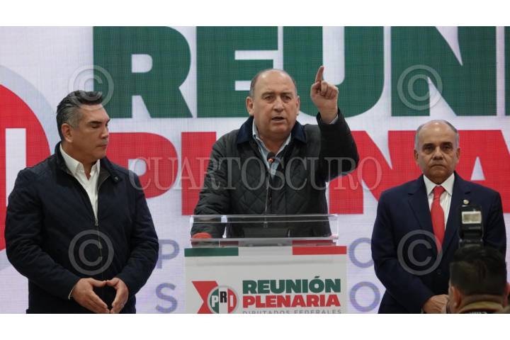 CIUDAD DE MÉXICO, 30ENERO2024.- Rubén Moreira, coordinador del PRI en la Cámara de Diputados, acompañado de Alejandro Moreno, dirigente Nacional del PRI, y el senador Manuel Añorve, durante la inauguración de la Reunión Plenaria en la CEN del PRI. FOTO: GRACIELA LÓPEZ /CUARTOSCURO.COM