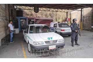 TAXCO, GUERRERO, 29ENERO2024.- Servicio de transporte público en la ciudad de Taxco, en la zona norte de Guerrero, el cual se suspendió durante casi una semana por amenazas del crimen organizado contra los transportistas. En las entradas y salidas de la ciudad colonial se puede observar la presencia de policía del estado que vigila el regreso parcial del transporte público, ha vuelto a circular cuatro de once derroteros. Imágenes tomadas el día de ayer. FOTO: ESPECIAL/CUARTOSCURO.COM