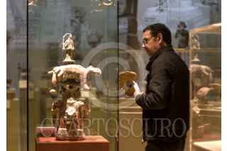 MONTERREY, NUEVO LEÓN, 30ENERO2024.- Se inaugura la exposición "Dioses Ocultos" del artista Demián Flores, de Juchitlán de Zaragoza, Oaxaca, en el Museo de Historia Mexicana. La exhibición consiste de 60 obras donde fusionan el arte contemporáneo con la figuración del mundo prehispánico. Dioses Ocultos será expuesta en diálogo con las obras de la sala permanente México Antiguo a partir del 31 de enero. Las obras del artista Demián Flores forman parte de la colección de Difusión Cultural F&H y permanecerán hasta el 31 de marzo del 2024. FOTO: GABRIELA PÉREZ MONTIEL / CUARTOSCURO.COM