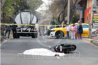 CIUDAD DE MÉXICO, 30ENERO2024.- Una mujer que viajaba en una motocicleta fue arrollada por una pipa lo que le provocó la muerte. Los hechos en avenida Ermita y calle 45, en la colonia Santa Cruz, alcaldía Iztapalapa. FOTO: ROGELIO MORALES/CUARTOSCURO.COM